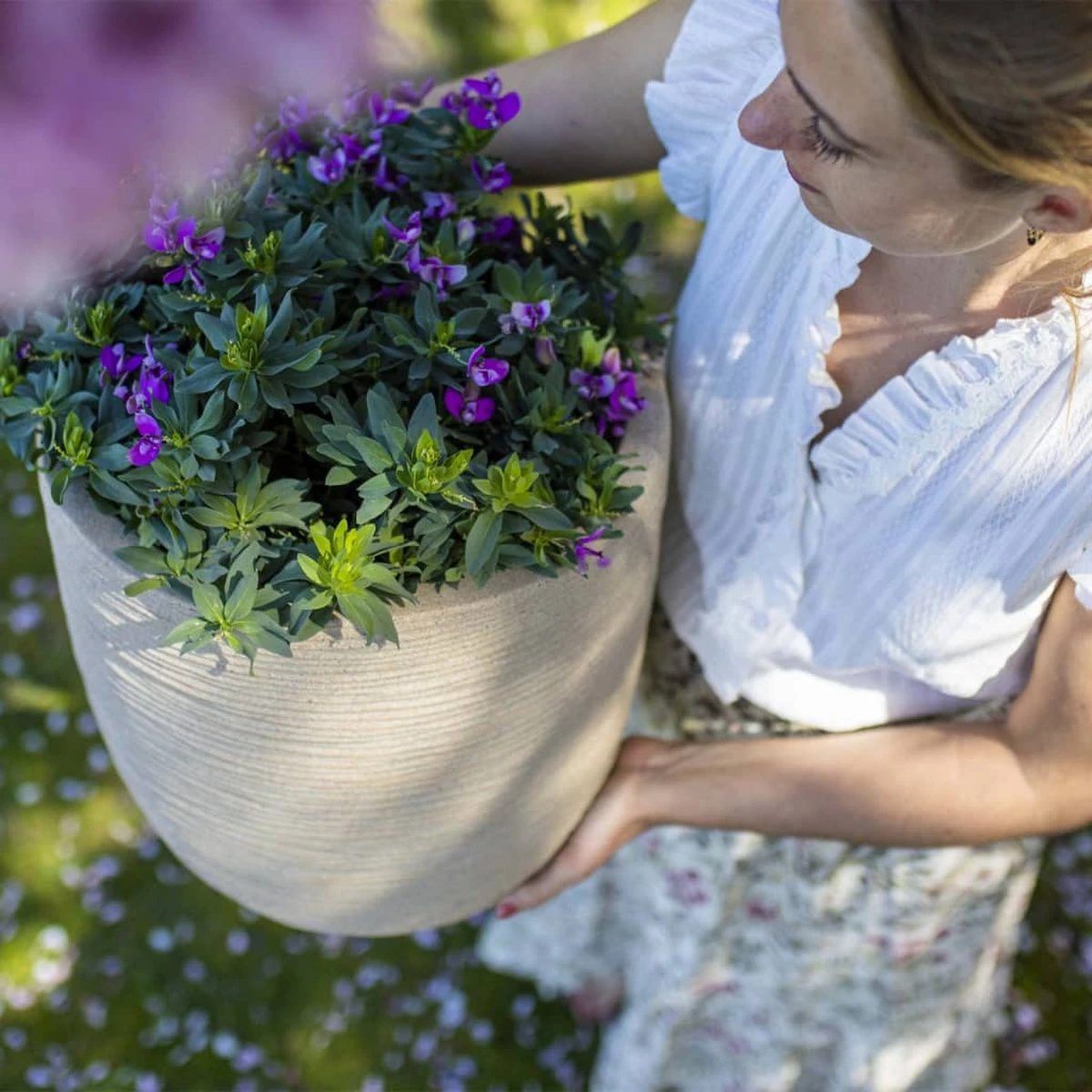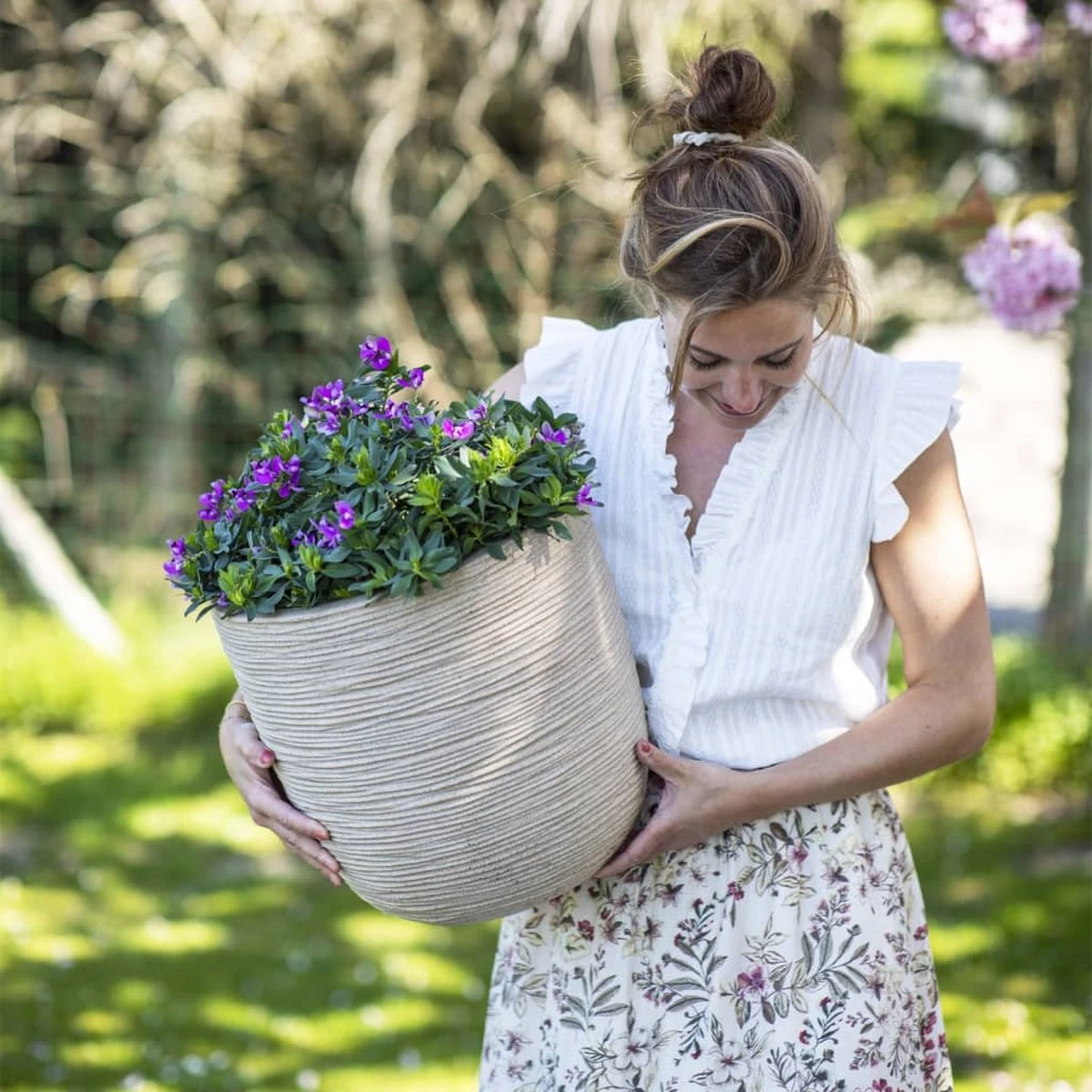 De Rib-textuur geeft deze pot een natuurlijke look. Deze textuur is geïnspireerd op gevlochten riet en de dunne lijnen daarvan. De smalle, dansende lijnen zorgen naast een natuurlijke look ook voor een speelse touch aan deze potten.