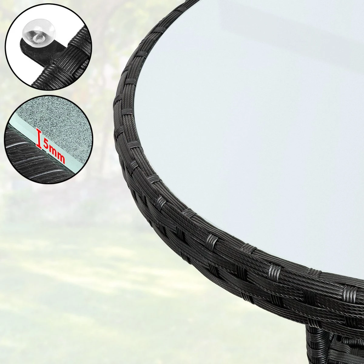Casaria Polyrattan Bijzettafel 80cm Rond – 5mm Veiligheidsglas – Zwart