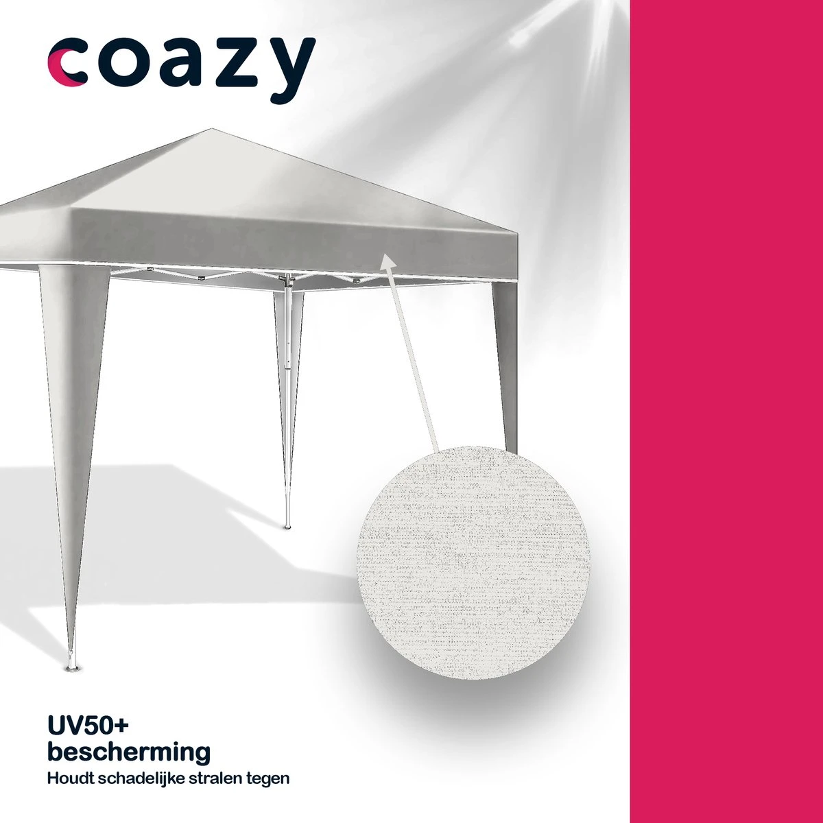 Je hoeft je geen zorgen meer te maken over zonnebrand! Jouw Coazy Partytent wordt geleverd met UV50+ bescherming zodat je gasten kunnen genieten van het buitenleven zonder zich zorgen te hoeven maken over hun huid.