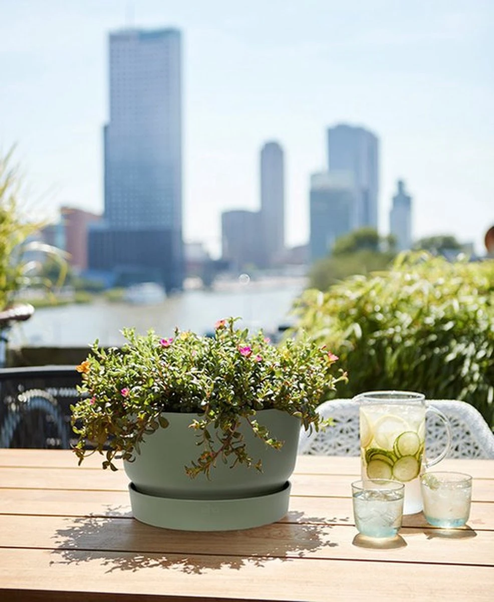 Deze prachtige design pot van gerecycled plastic is vorstbestendig en daardoor geschikt voor alle seizoenen in de tuin of op het terras. De pot heeft een geïntegreerd waterreservoir dat jouw planten altijd voldoende water hebben. Deze bloempotten zijn gemaakt van hoge kwaliteit plastic, waardoor ze makkelijk schoon te maken zijn, niet snel beschadigen en dus tegen een stootje kunnen.