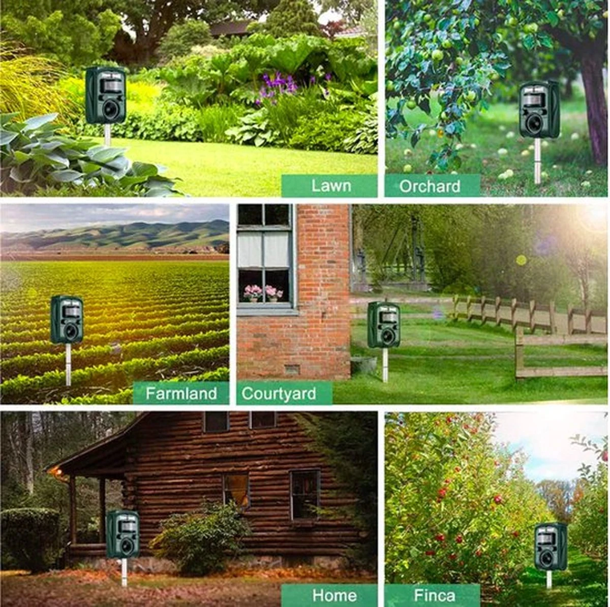 De frequenties kunnen hoorbaar zijn voor mensen. Zorg er om deze reden voor dat de verjagers geplaatst worden buiten bereik van mensen / uw huisdieren. De frequenties gaan niet door muren heen.