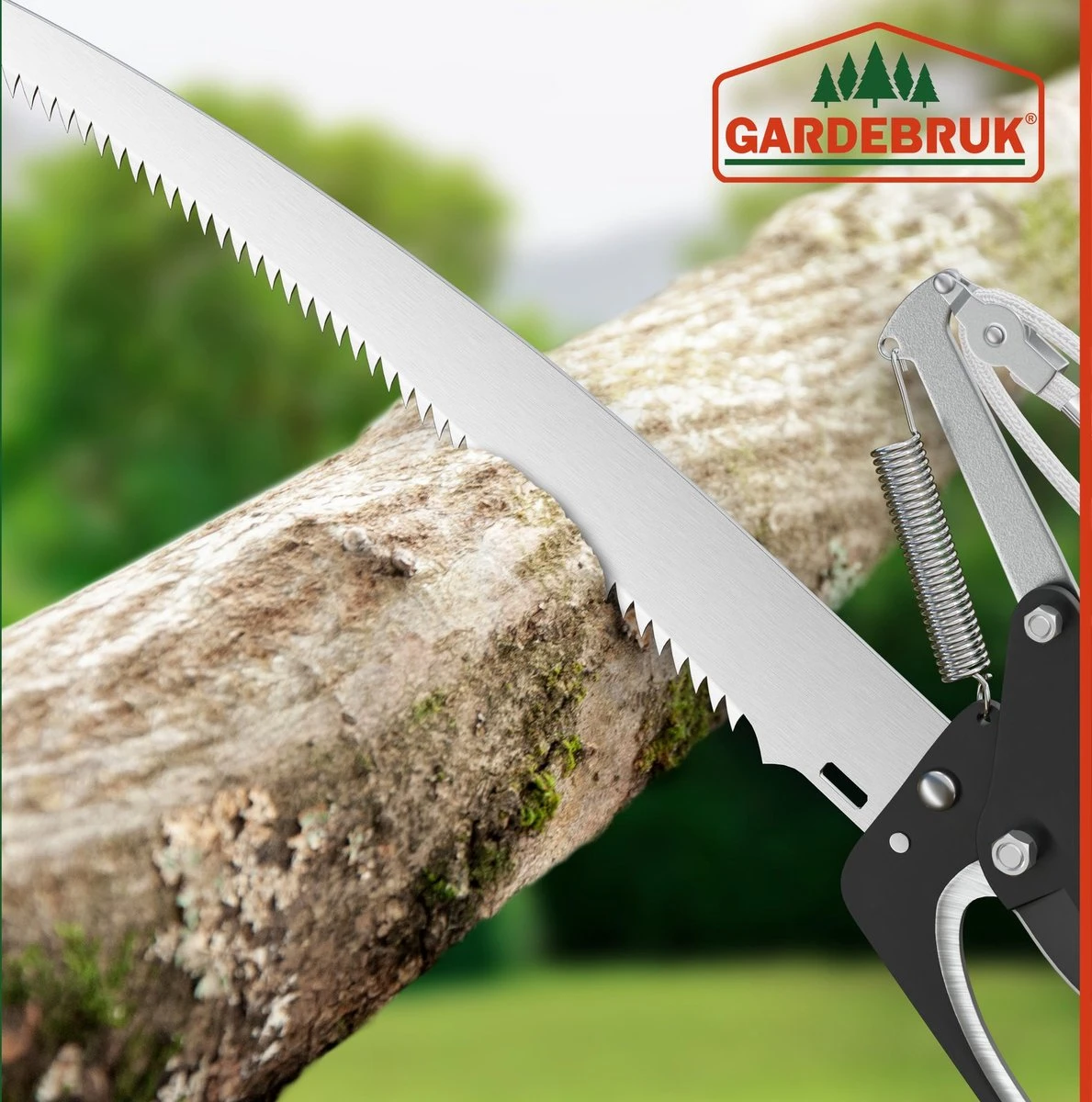 Maak jouw snoeiwerk gemakkelijker met de 2in1 telescopische snoeizaag en takkenschaar van Gardebruk.