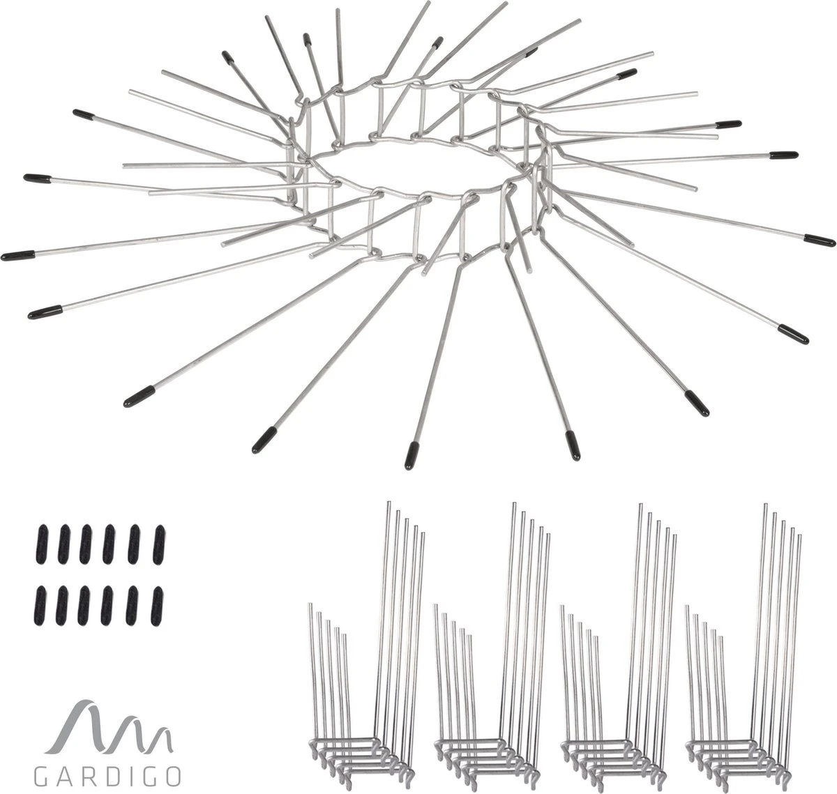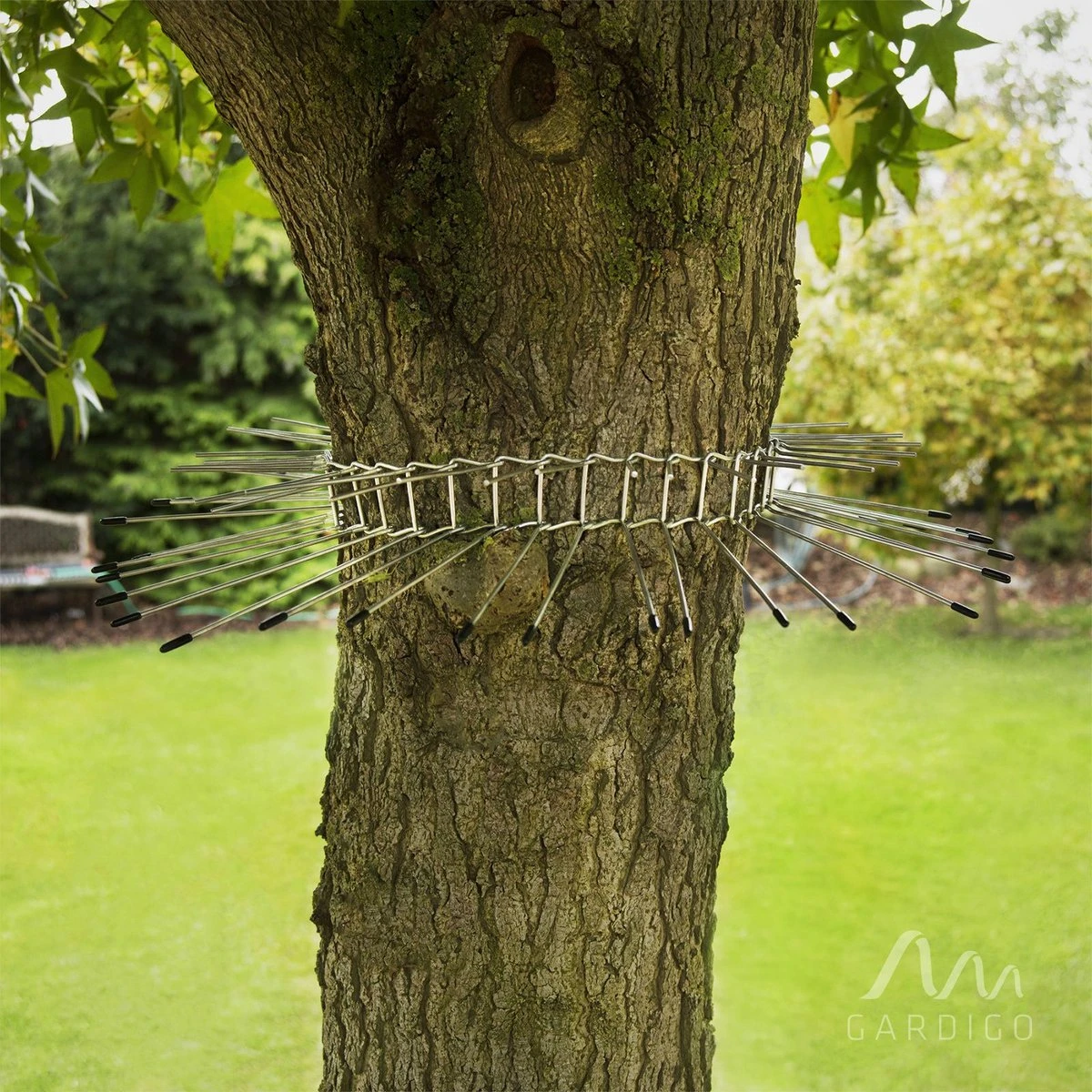 Katten jagen vaak op onze inheemse zangvogels. Als je nesten en nestkastjes wilt beschermen tegen de katten, moet je voorkomen dat ze in bomen klimmen. Dit is precies waar onze katten verdedigingsriem voor gemaakt is. De stekels zien er indrukwekkend uit, maar ze doen het dier geen kwaad, want het is een klimmende barrière. De Gardigo kattenbeschermingsgordel bestaat uit afzonderlijke draadelementen, die je voor gebruik in elkaar zet. Je kunt de lengte individueel bepalen. Voor grote boomdiameters kan de band ook worden aangevuld met een andere set. Technische specificaties: * afmetingen: 50 x 50 x 5,7 cm * boomdiameter: tot 21 cm Levering inclusief: * 30 draadelementen, 62 rubberen doppen, 2 kabelbinders