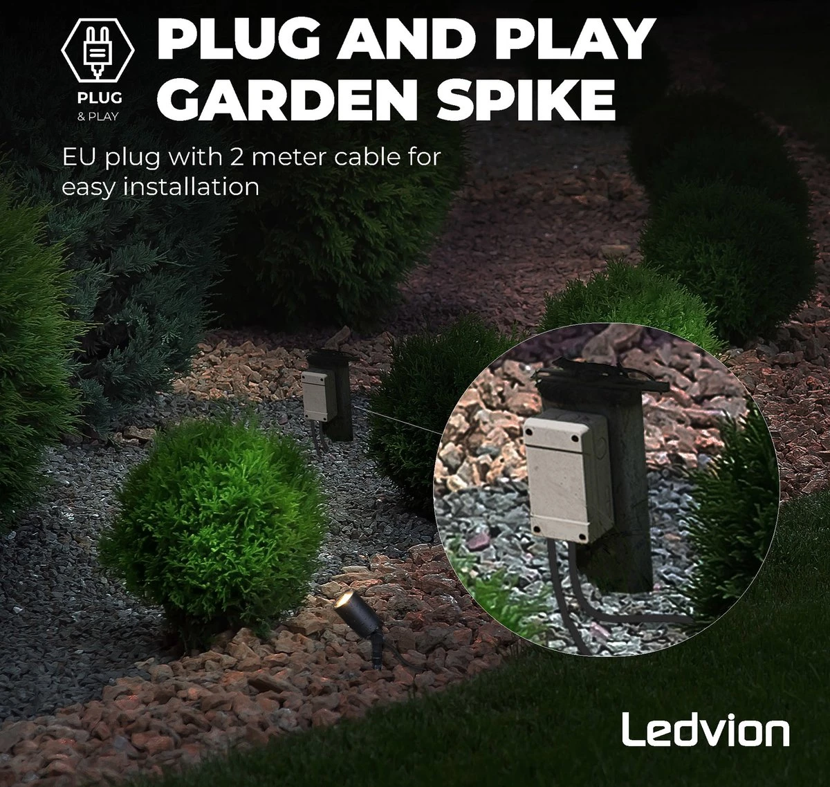 De prikspot buiten wordt geleverd met een netsnoer en kabel van circa 200cm. Het wordt aangeraden om een IP68 kabelverbinder mee te bestellen. Hiermee kun prikspot veilig worden aangesloten. Wanneer je de prikspot set compleet wilt maken dan raden wij het aan om een GU10 spot mee te bestellen. Hiermee zorg je ervoor dat er ook daadwerkelijk licht uit de prikspot gaat komen. Eenmaal een GU10 spot mee besteld dan is de prikspot set compleet en heb je alles in huis om de prikspot tuin te plaatsen en te laten schijnen.