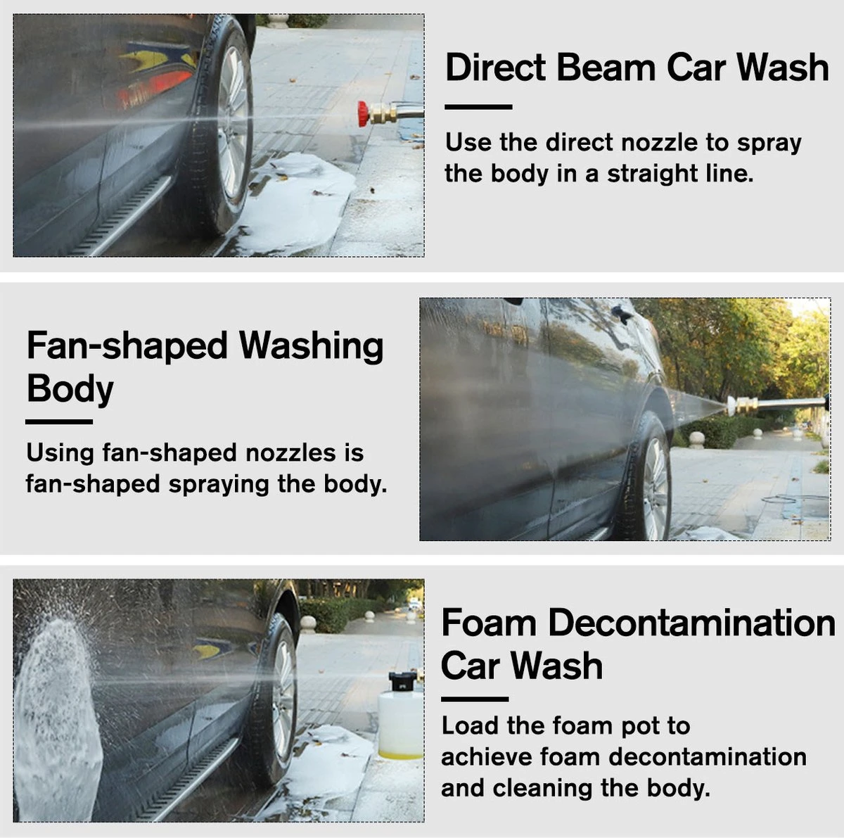 Het kan niet alleen worden gebruikt voor het reinigen van auto’s, fietsen, balkons, ramen, muren en andere objecten, maar kan ook worden gebruikt voor agrarische taken buiten, zoals het besproeien van bloemen en het spuiten van pesticiden.