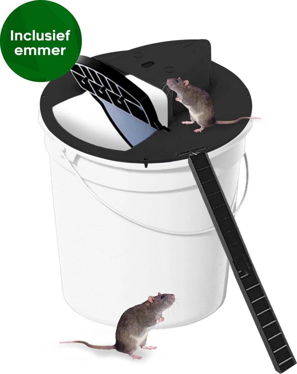 - Inhoud: Emmer, deksel van muizenval, 1 luikje, 1 trapje en 1 instructie