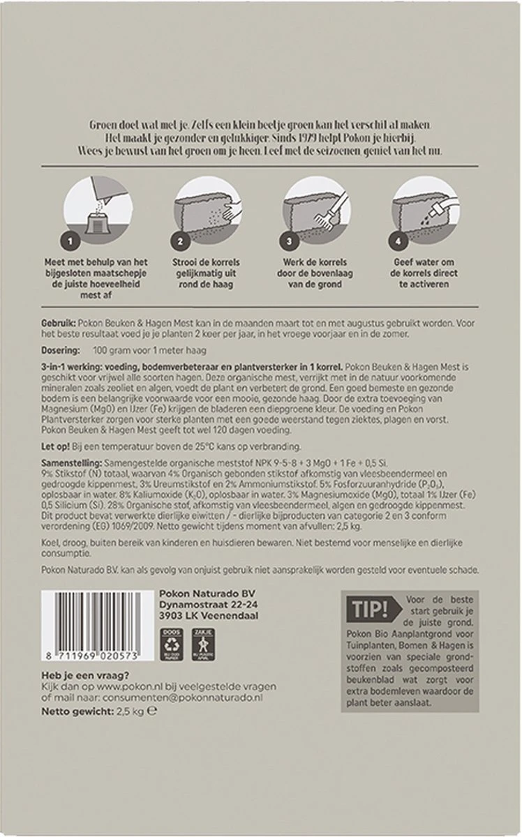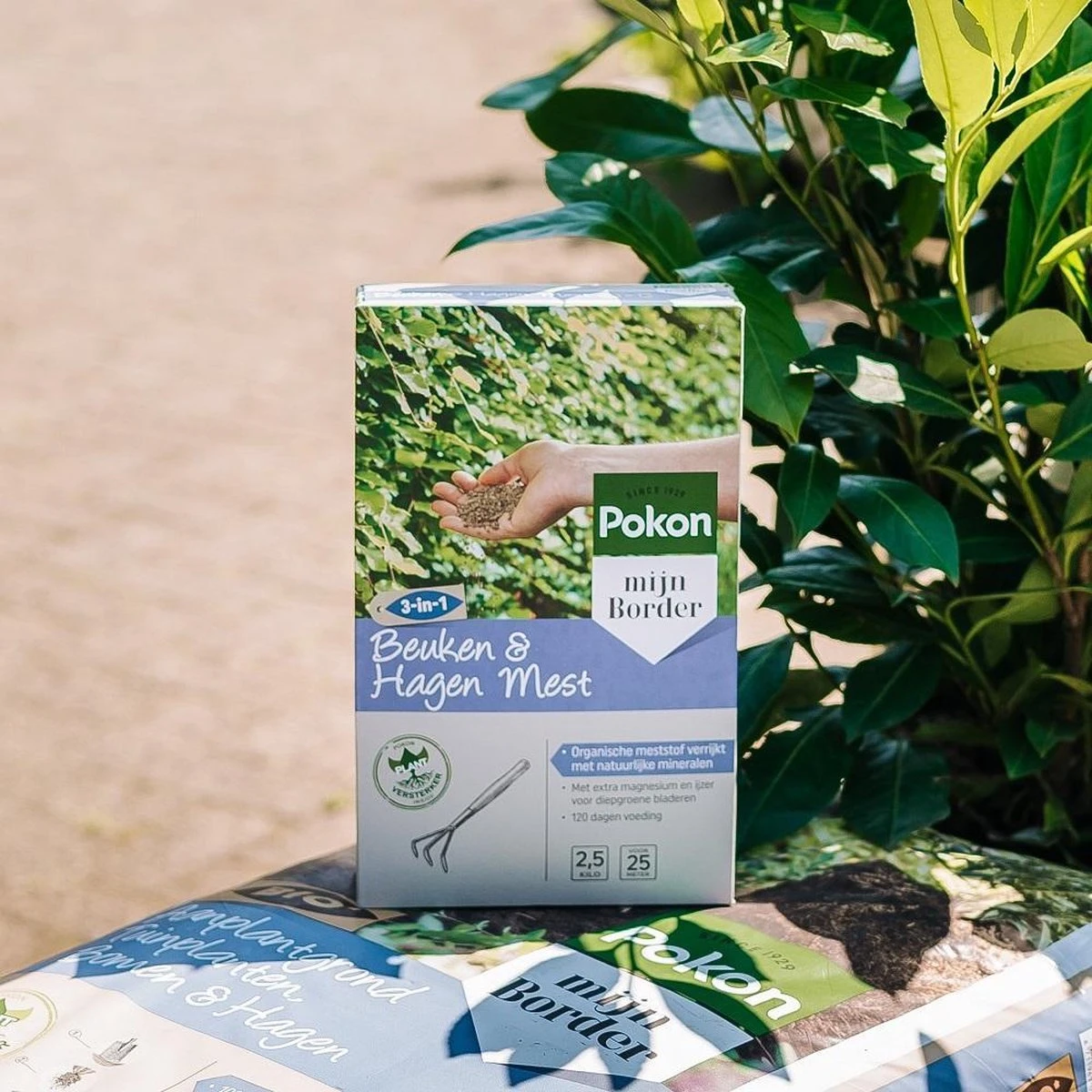 Met Beuken & Hagen Mest van Pokon, ben je verzekerd van groene en gezonde begroeiing!
