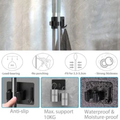 BOTC Bezemhouder – 4 Stuks – RVS – Bezem Ophangsysteem – Bezem Houder – Tuingereedschap – Zwart