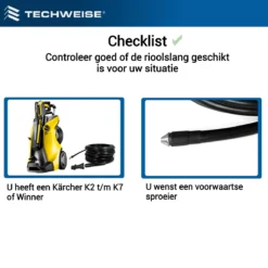 Techweise – Rioolslang Voor Kärcher K2 T/m K7 – 15M – Met Voorwaartse Hogedruksproeiers