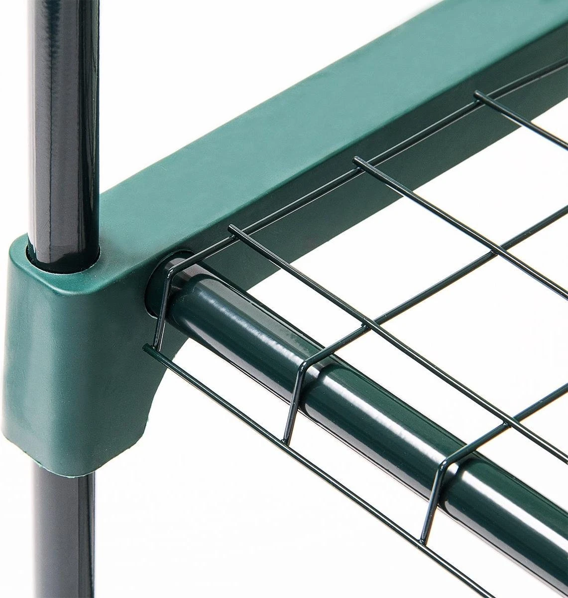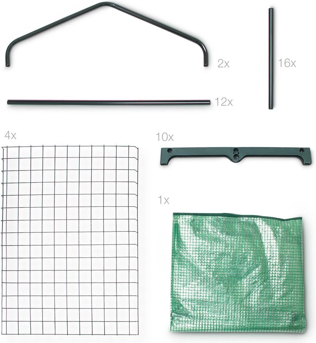 De kas is met de geïllustreerde handleiding makkelijk en zonder gereedschap op te bouwen. U moet alleen het gepoedercoat stalen frame in de openingen van de plastieken onderdelen steken.