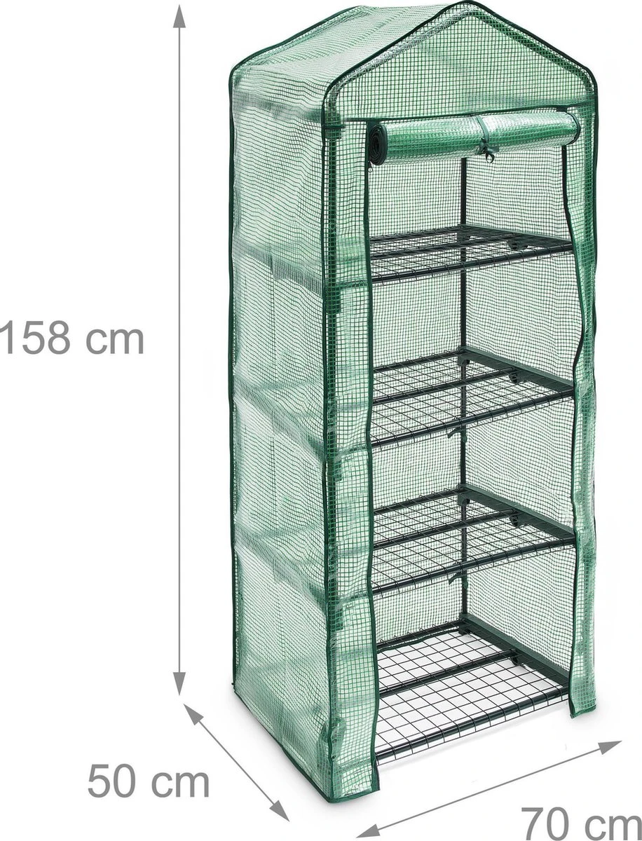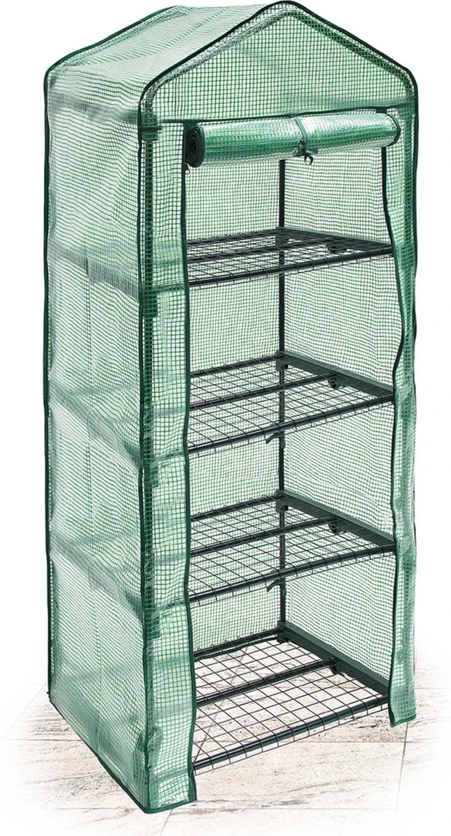 Deze kas is ideaal voor het laten groeien van planten en kruiden. Het dikke, scheurvaste folie beschermt uw stekjes en kruiden onder alle weersomstandigheden. De deur met ritssluitingen is makkelijk te openen en geeft ook de mogelijkheid om de temperatuur in de kas te regelen. De deur kan opgerold en met een stoffen lint vastgemaakt worden, waardoor u uw planten ook makkelijk water kunt geven en verzorgen.