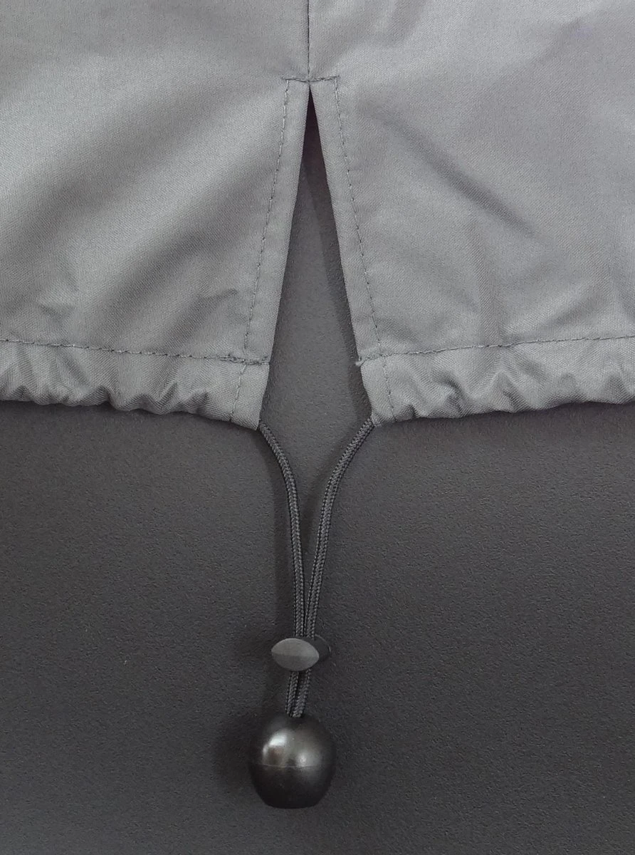 De beschermhoes is voorzien van een aantrekkoord met stopper, zodat de hoes stevig en ordelijk om het meubilair zit en niet kan wegwaaien. De hoes is waterafstotend, echter is hij niet bestand tegen een flinke plas water voor geruime tijd. Drapeer de hoes op een dusdanige manier dat het water eraf kan lopen. Na verloop van tijd is lichte verkleuring van de beschermhoes mogelijk.