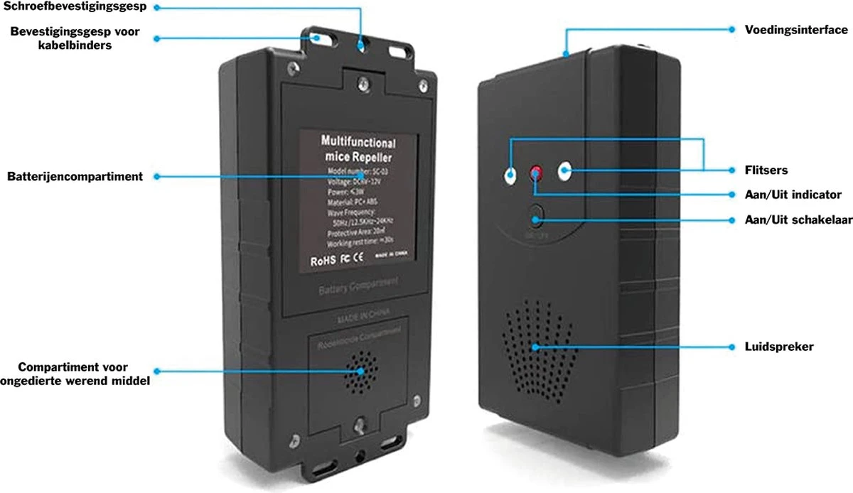 - Niet giftig en onschadelijk: De Sparckz marterverjager zal geen schade toebrengen aan kinderen of huisdieren, noch heeft het invloed op onderdelen van uw auto. De ultrasone golven zijn ongemakkelijk voor ongedierte, maar veilig voor mensen.