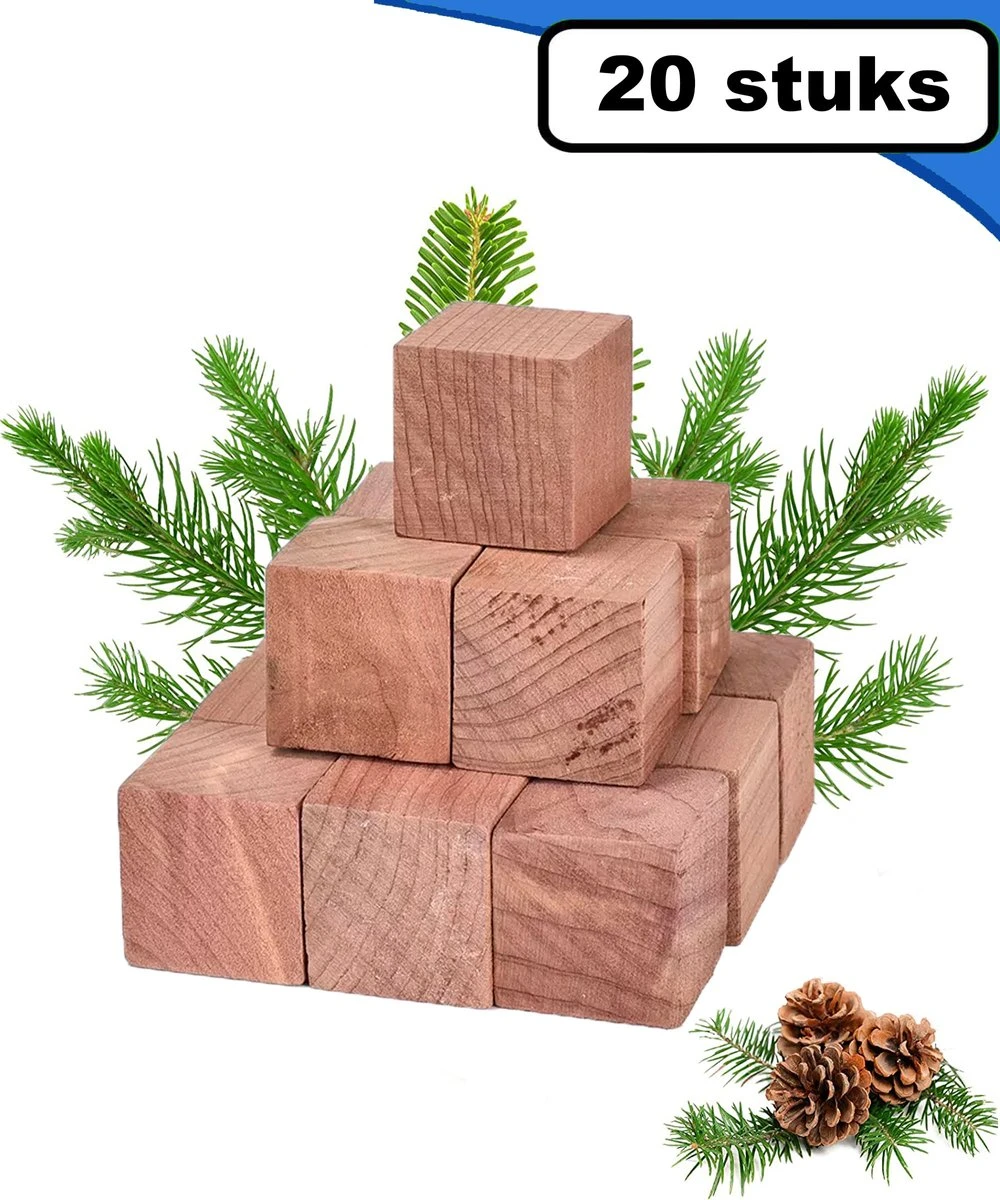 - Inhoud verpakking: 20 Cederhout Mottenballen kubussen