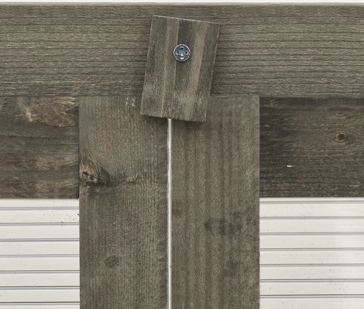 - Materiaal: massief vurenhout met grijze waterbasisafwerking en PC-plaat