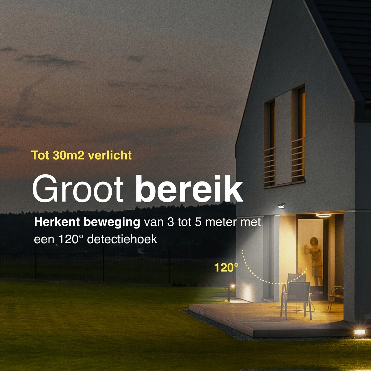 De Vivid Green Solar tuinverlichting biedt enorm veel licht. Met 208 LED lampen verlicht de buitenlamp een oppervlak tot 30 vierkante meter. Breng eenvoudig sfeerverlichting aan in de tuin in de zwoele zomermaanden. Of verlicht het tuinpad naar de schuur tijdens de winterse avonden zodat je altijd zicht hebt op waar je loop. Wel zo veilig als het glad is!