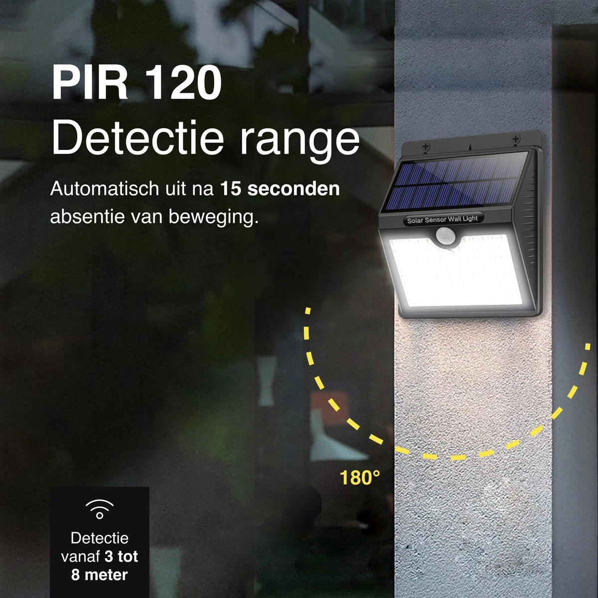 De lichten gaan automatisch aan bij beweging door de bewegingssensor. Nog een pluspuntje is dus ook de grote activatierange van deze sensor, deze is namelijk van wel 3 tot 8 meter en maar liefst 120 graden!