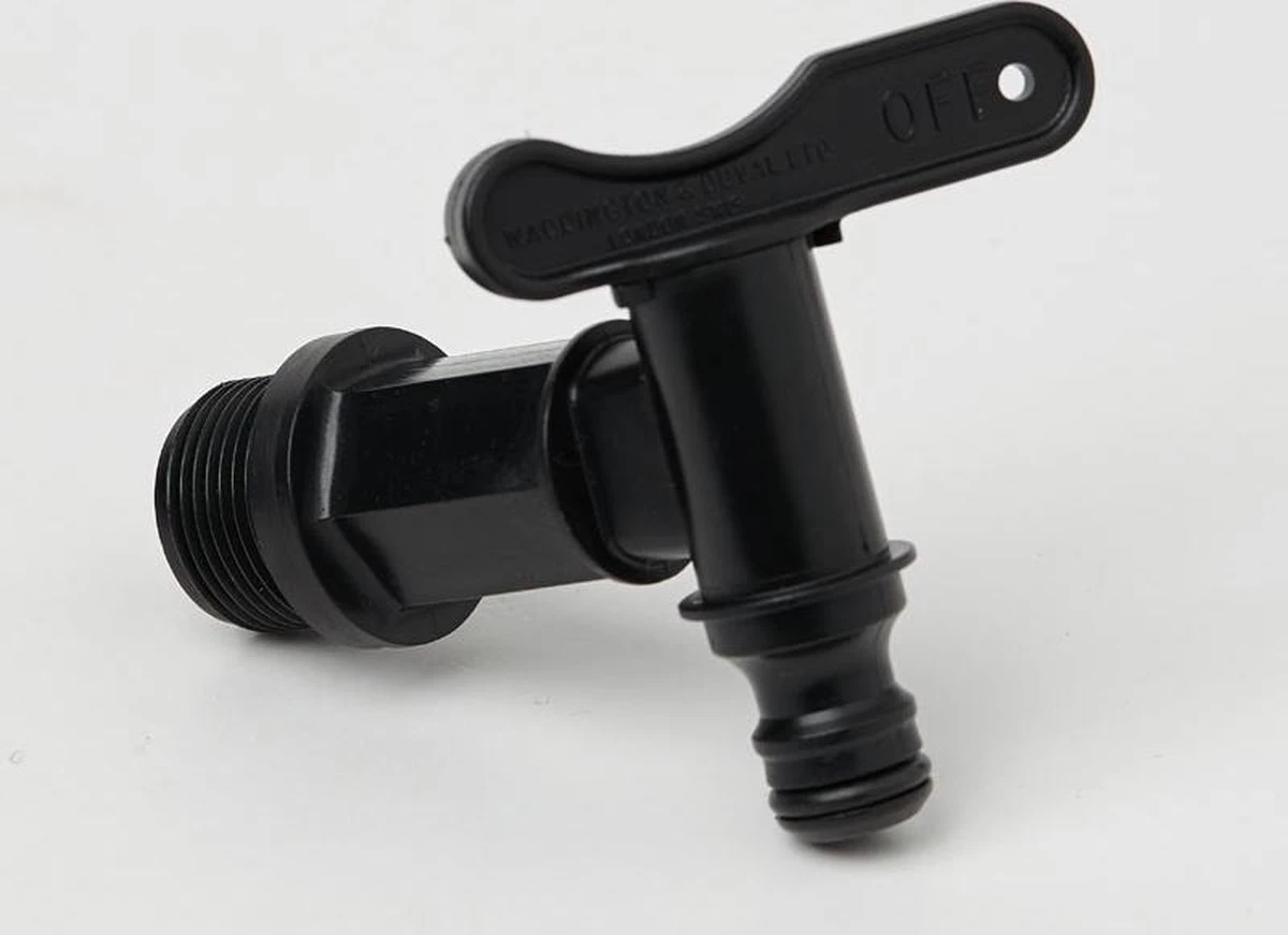 Dankzij deze kraan kan je gemakkelijk regenwater uit je water/regenton aftappen voor gebruik in de tuin. Met zijn handige draaiknop kan je precies afmeten hoeveel water je nodig hebt. (in kunststof).